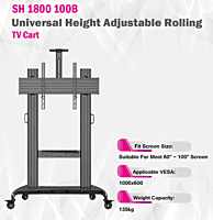 Skill Tech Aluminium Interactive TV Cart for most 60-100" Screen, Vesa 1000x600, Load Capacity 136 Kg, Black Color