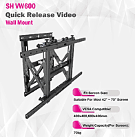 Skill Tech Heavy Duty Pop-Out Video Wall Mount with micro adjustment for most 42-75" Screen, VESA 600x400, Max Load Capacity 70 Kgs