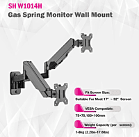 Skill Tech Dual monitors elemental wall-mounted gas spring monitor arm for most 17-32" Screen, VESA 100x100, Max Load capacity 18 Kg