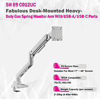 Skill Tech Single monitor spring-assisted pro gaming monitor arm for most 13-27" Screen,USB A AND USB C, VESA 100x100, Load capacity 9 Kg