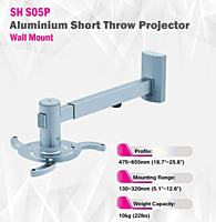 Skill Tech Aluminium Short Through Projector Wall Mount, Mounting Profile 54~320mm, Max Load capacity 10 Kg